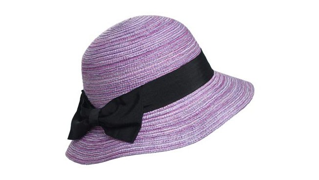 優(yōu)質(zhì)的天然草帽,用深淺不一的紫色一圈圈的編織,黑色的蝴蝶結(jié)頗具時尚和活力。