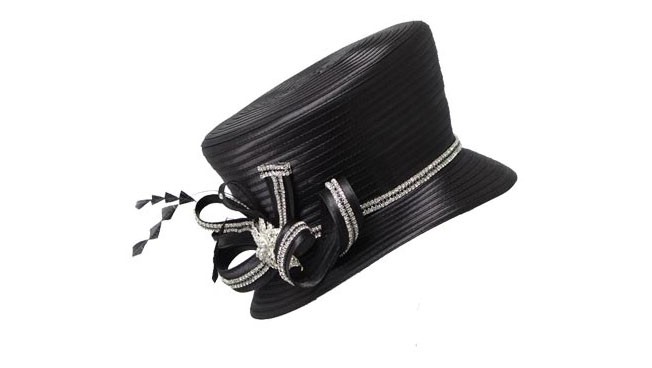 優(yōu)質的環(huán)保色丁布料,塑造出了一個高大挺括的帽身,金銀剔透的裝飾更增添了它的高貴。
